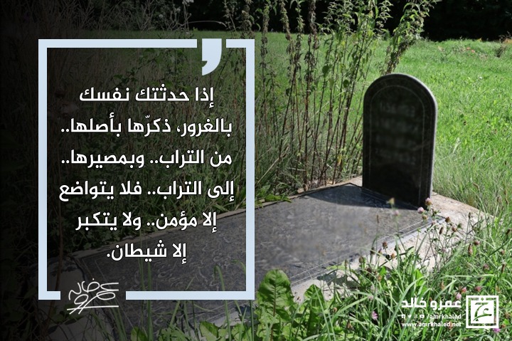 "إذا حدثتك نفسك بالغرور، ذكرّها بأصلها.. من التراب.. وبمصيرها.. إلى التراب.. فلا يتواضع إلا مؤمن.. ولا يتكبر إلا شيطان".