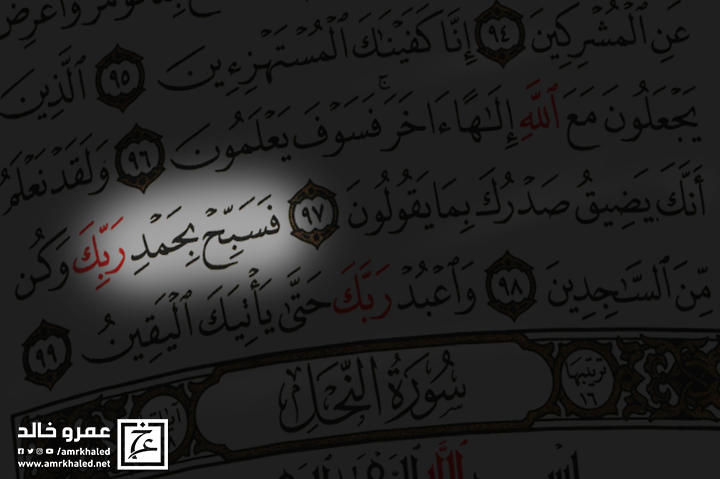 amrkhaled {وَلَقَدْ نَعْلَمُ أَنَّكَ يَضِيقُ صَدْرُكَ بِمَا يَقُولُونَ* فَسَبِّحْ بِحَمْدِ رَبِّكَ وَكُنْ مِنَ السَّاجِدِينَ} (الحجر: 97 و98)