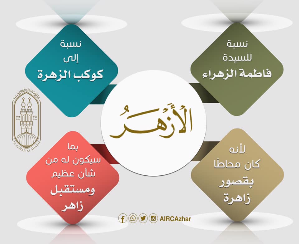 الأزهر الشريف سبب التسمية نسبه الي السيدة فاطمة الزهراء احاطته بقصور زاهرة كوكب الزهرة