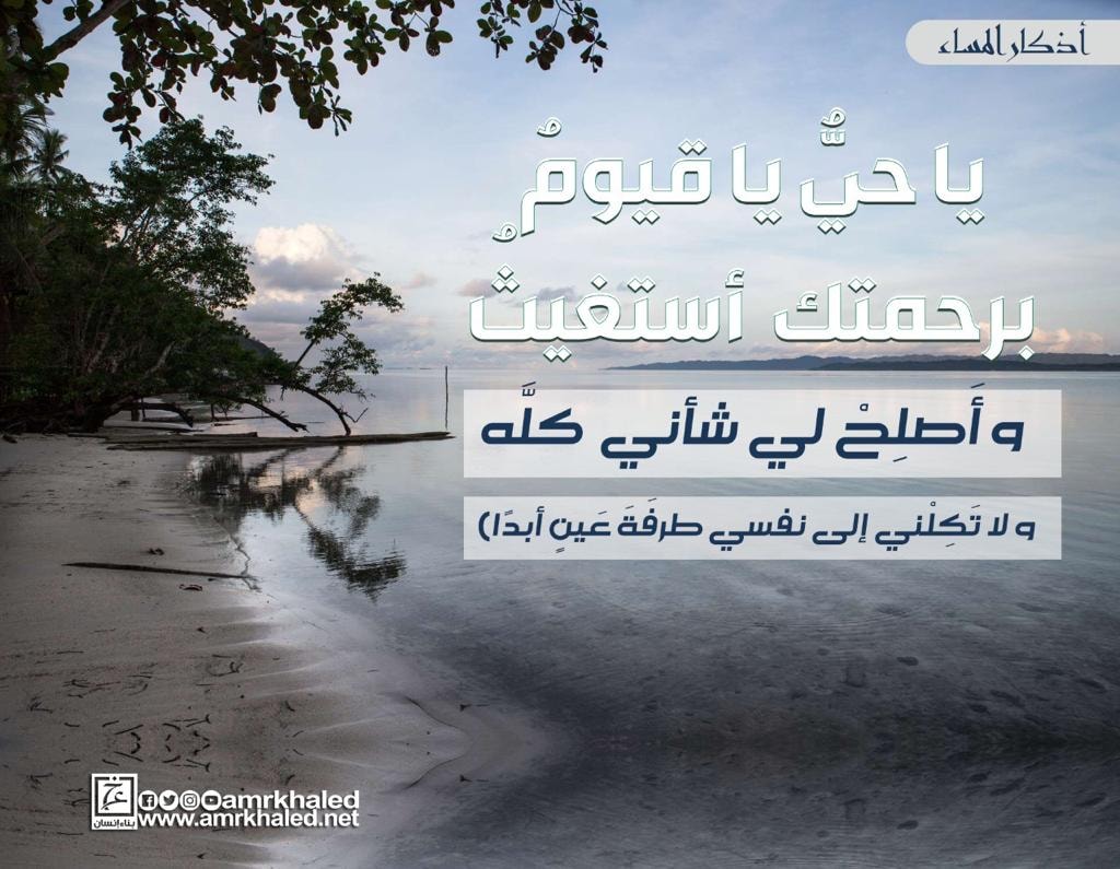 amrkhaled ياحي ياقيوم برحمتك أستغيث أصلح لي شأني كله ولا تكلني إلى نفسي طرفة عين من قالها ثلاثا حين يمسي لم يخذله الله