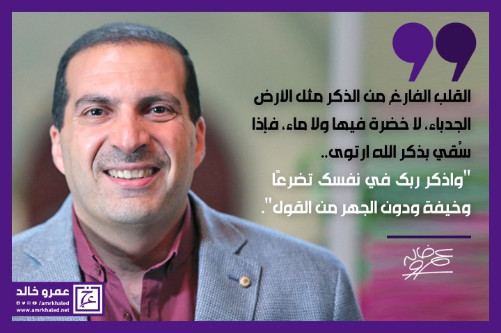 amrkhaled "القلب الفارغ من الذكر مثل الأرض الجدباء، لا خضرة فيها ولا ماء، فإذا سُقي بذكر الله ارتوى.. {واذكر ربك في نفسك تضرعًا وخيفة ودون الجهر من القول}".