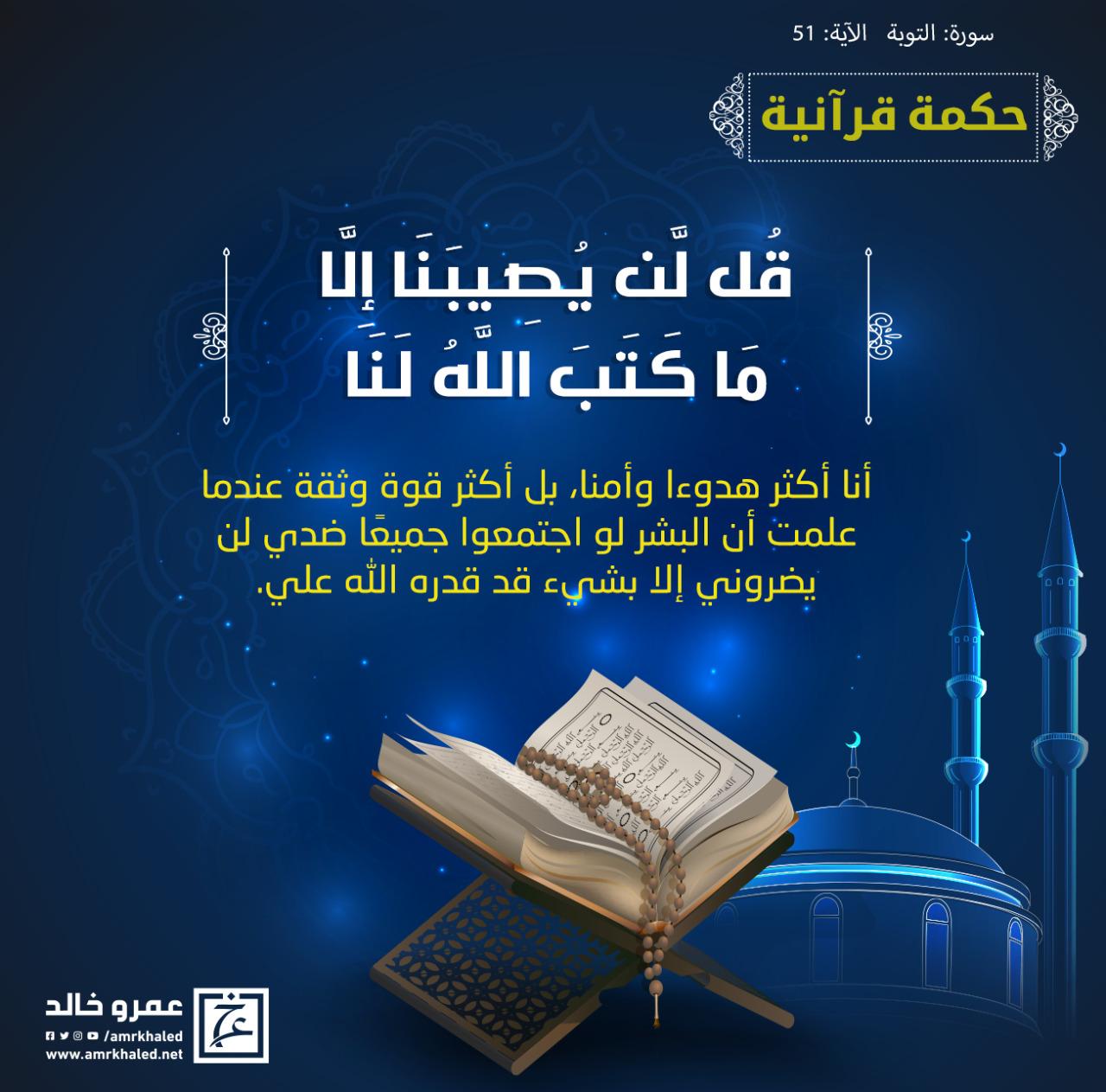 حكم قرآنية.. {قُل لَّن يُصِيبَنَا إِلَّا مَا كَتَبَ اللَّهُ لَنَا}