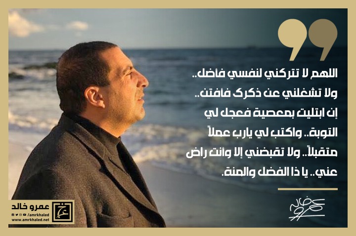 amrkhaled "اللهم لا تتركني لنفسي فأضل.. ولا تشغلني عن ذكرك فأفتن.. إن ابتليت بمعصية فعجل لي التوبة.. واكتب لي يا رب عملاً متقبلاً.. ولا تقبضني إلا وأنت راض عني.