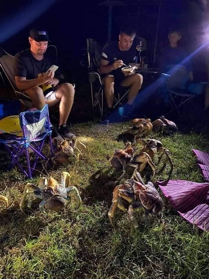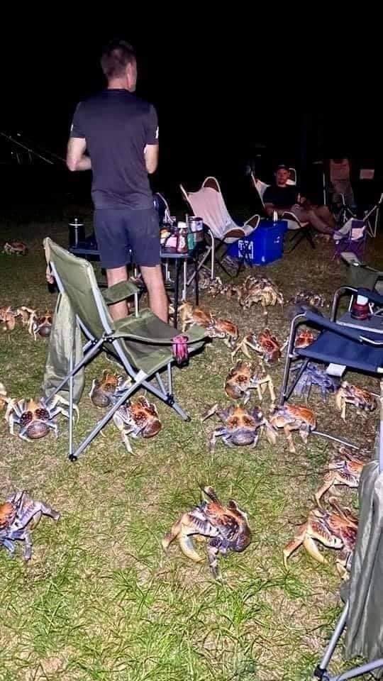 وجذبت رائحة الباربيكيو على ما يبدو "السلطعونات" التي رفضت أن تغادر المكان من دون الحصول على الغنائم، في الوقت الذي قام فيه أفراد العائلة بتصوير نفسهم وهم محاصرين.