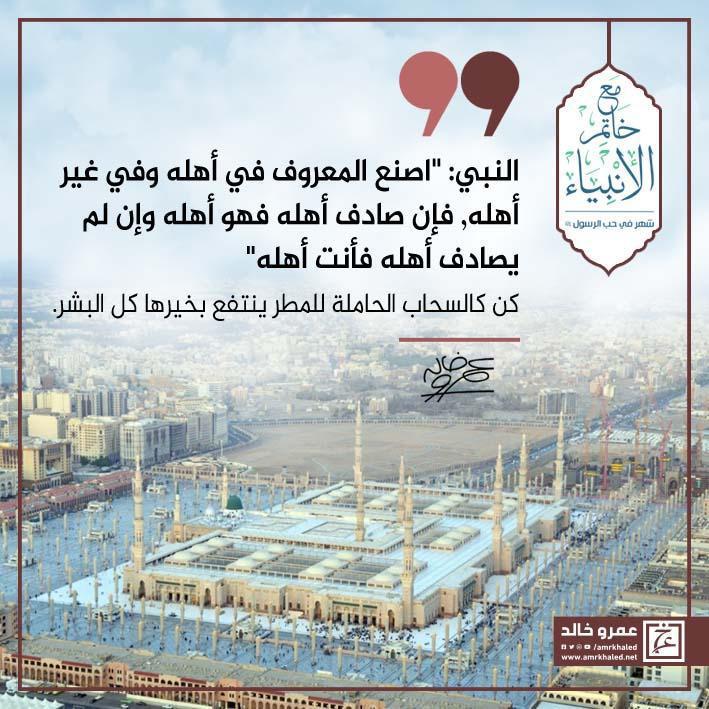 amrkhaled "النبي: (اصنع المعروف في أهله وفي غير أهله, فإن صادف أهله فهو أهله وإن لم يصادف أهله فأنت أهله).. كن كالسحاب الحاملة للمطر ينتفع بخيرها كل البشر.