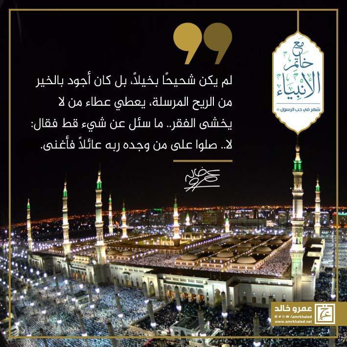 amrkhaled "لم يكن شحيحًا بخيلاً، بل كان أجود بالخير من الريح المرسلة، يعطي عطاء من لا يخشى الفقر.. ما سئل عن شيء قط فقال: لا.. صلوا على من وجده ربه عائلاً فأغنى