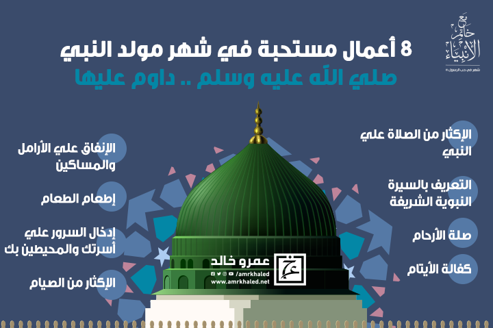 amrkhaled هناك أعمال مستحبة يجب علي العبد المسلم القيام بها خلال مولد النبي الشريف منها الاكثار من الصلاة عليه والتعريق بسيرته وصلة الارحام والانفاق علي الارامل