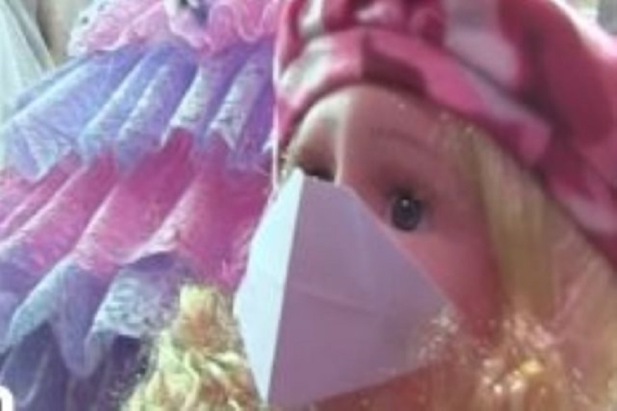 وأظهر مقطع فيديو لأحد أماكن بيع حلاوة المولد النبوي، ب ، وهي تزين العديد من العرائس بكمامة "كورونا".