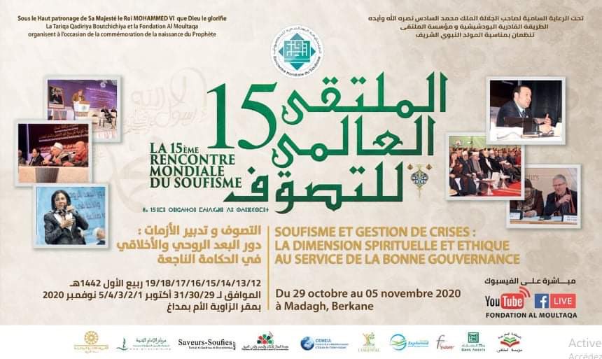 واصلت جلسات الملتقى العالمي للتصوف الذي تنظمه مؤسسة الملتقى والطريقة القادرية البودشيشية ومشيختها بشراكة مع المركز الأورو متوسطي لدراسة الإسلام اليوم، بعقد الجلسة العلمية الثالثة تحت عنوان "في الحاجة إلى حكامة روحية وأخلاقية لتدبير الازمات"، وذلك مساء الجمعة 30 أكتوبر الجاري.