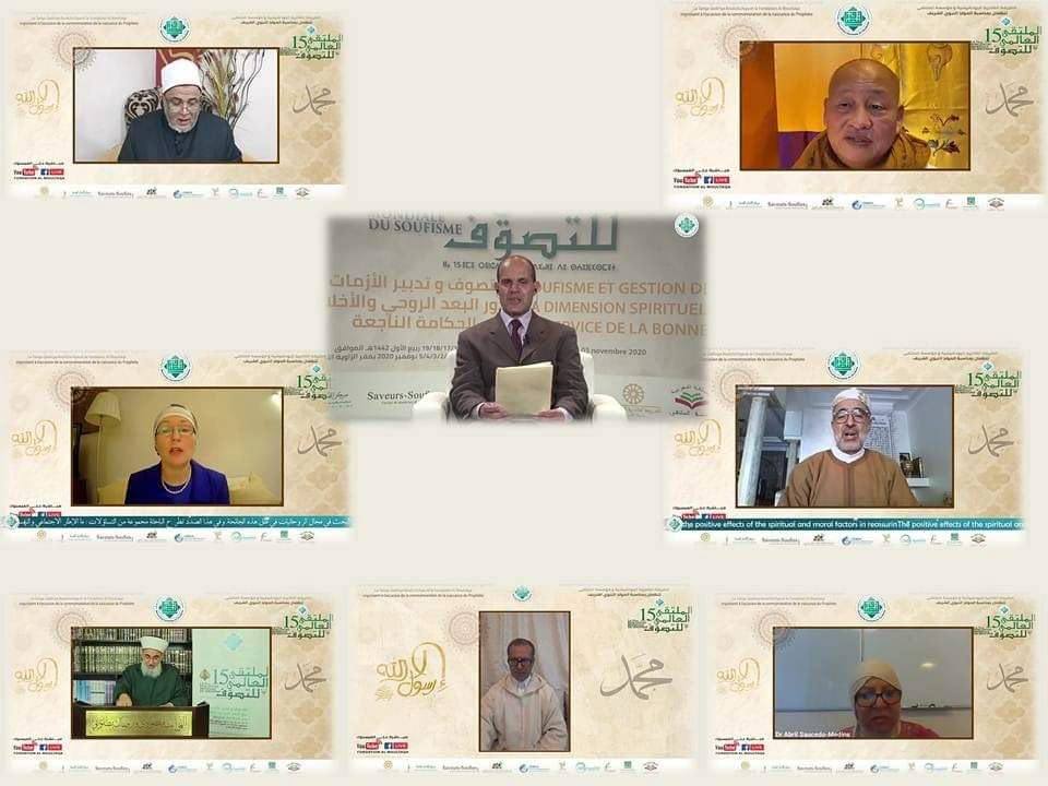 تتواصل فعاليات الملتقى العالمي للتصوف المنظم من طرف مؤسسة الملتقى والطريقة القادرية البودشيشية ومشيختها بشراكة مع المركز الأورومتوسطي لدراسة الاسلام اليوم، في الفترة من 12 الى 19 ربيع الأول 1442ه الموافق من 29 أكتوبر الى 5 نونبر، بانعقاد الجلسة العلمية الخامسة، حول موضوع " أهمية المكون الروحي والأخلاقي في تدبير الأزمات: كوفيد 19 نموذجا".
