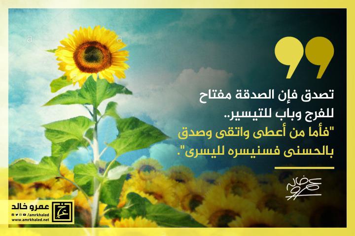 amrkhaled "تصدق فإن الصدقة مفتاح للفرج وباب للتيسير.. {فأما من أعطى واتقى وصدق بالحسنى فسنيسره لليسرى}".