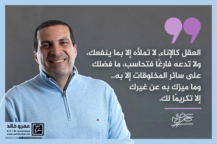 amrkhaled "العقل كالإناء, لا تملأه إلا بما ينفعك، ولا تدعه فارغًا فتحاسب، ما فضلك على سائر المخلوقات إلا به.. وما ميزك به عن غيرك إلا تكريمًا لك".