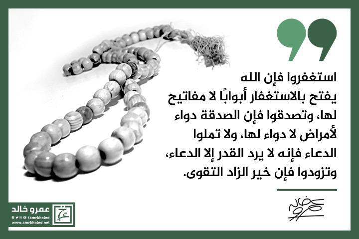 "استغفروا فإن الله يفتح بالاستغفار أبوابًا لا مفاتيح لها، وتصدقوا فإن الصدقة دواء لأمراض لا دواء لها، ولا تملوا الدعاء فإنه لا يرد القدر إلا الدعاء، وتزودوا فإن خير الزاد التقوى".