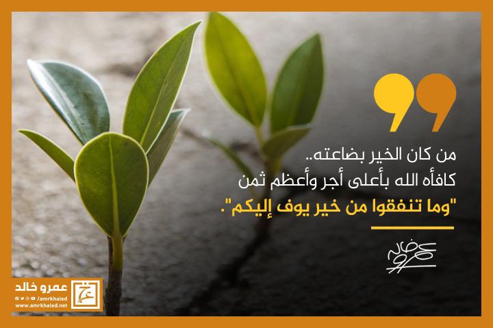amrkhaled "من كان الخير بضاعته.. كافأه الله بأعلى أجر وأعظم ثمن {وما تنفقوا من خير يوف إليكم}".