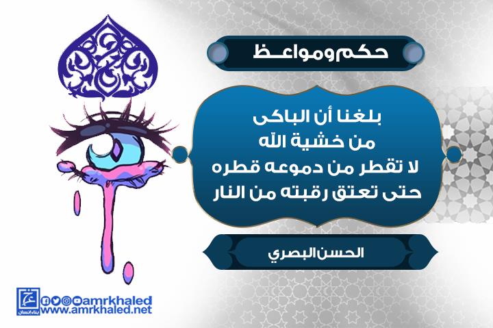 البكاء من خشية الله تعالى نعمة من نعم الله تعالى على المسلم الذي يستشعر فضل الله عليه فيكبره في قلبه ويعمل على رضاه في جهره ونجواه.. كان الصحابة والتابعون يبكون من خشية الله مهابة منه وإجلالا .. لاسيما غن غلبت أحدهم معصية فينظر لمعصيته كأنها جبل امامه يريد ان يقع عليه ويظل تكبر امامه ويستعظم ما فعل ويتوب ويجدد التوبة ويبكر ويندم ويعزم على عدم العود صادقين في توبتهم.