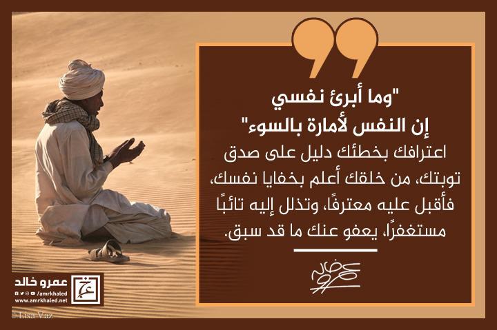 amrkhaled "{وما أبرئ نفسي إن النفس لأمارة بالسوء}، اعترافك بخطئك دليل على صدق توبتك، من خلقك أعلم بخفايا نفسك، فأقبل عليه معترفًا، وتذلل إليه تائبًا مستغفرًا