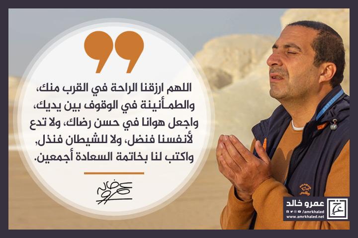 "اللهم ارزقنا الراحة في القرب منك، والطمـأنينة في الوقوف بين يديك، واجعل هوانا في حسن رضاك، ولا تدع لأنفسنا فنضل، ولا للشيطان فنذل, واكتب لنا بخاتمة السعادة أجمعين".
