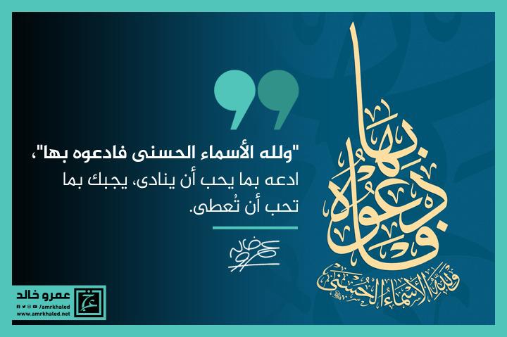 amrkhaled "{ولله الأسماء الحسنى فادعوه بها}، ادعه بما يحب أن ينادى، يجبك بما تحب أن تُعطى".