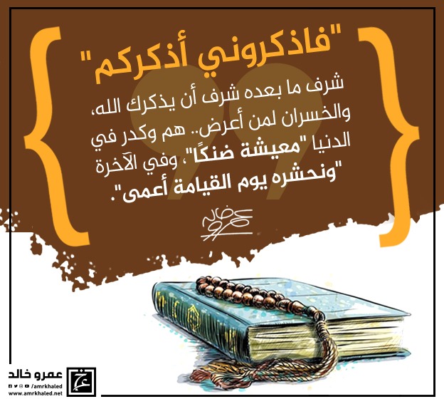 amrkhaled "{فاذكروني أذكركم}، شرف ما بعده شرف أن يذكرك الله، والخسران لمن أعرض.. هم وكدر في الدنيا {معيشة ضنكًا}، وفي الآخرة
