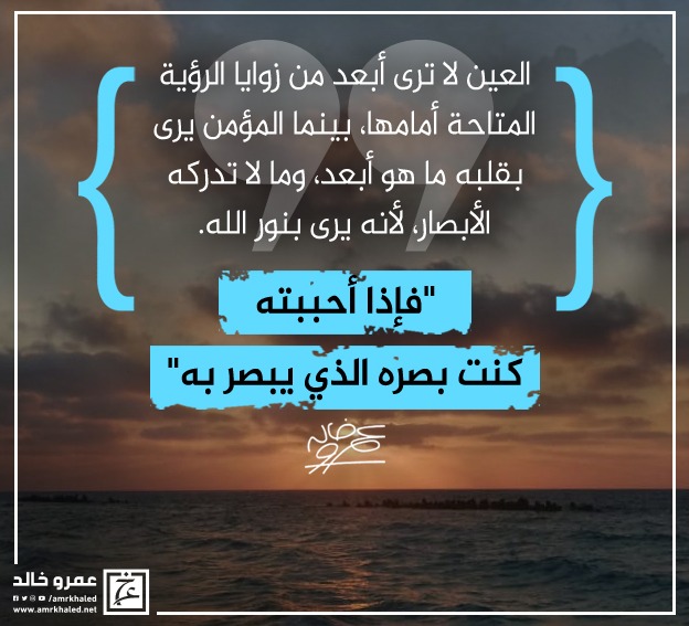 amrkhaled "العين لا ترى أبعد من زوايا الرؤية المتاحة أمامها، بينما المؤمن يرى بقلبه ما هو أبعد، وما لا تدركه الأبصار، لأنه يرى بنور الله