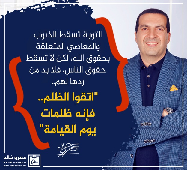 amrkhaled "التوبة تسقط الذنوب والمعاصي المتعلقة بحقوق الله، لكن لا تسقط حقوق الناس، فلا بد من ردها لهم.. {اتقوا الظلم.. فإنه ظلمات يوم القيامة}".