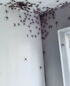 وعندما ذهبت صديقة روجرز للتحقق من الأمر، وجدت عددا قليلا من العناكب في زاوية الغرفة. وتقول في الفيديو: "هذا ليس سيئا للغاية، ربما يوجد 50 أو 60 منها". ثم وجهت الكاميرا نحو زاوية أخرى، وكشفت ما لا يقل عن ضعف عدد العناكب على الجدران والسقف.