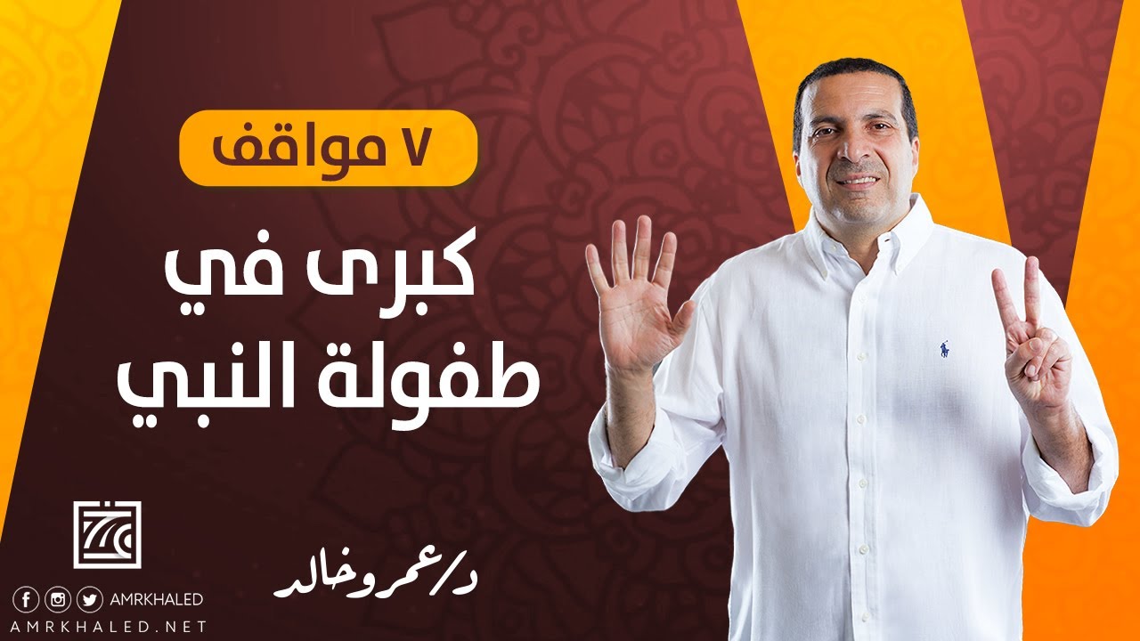 الدكتور عمرو خالد، عبر مقطع الفيديو المنشور على صفحته الشخصية على موقع "يوتيوب" لمشاهديه ومتابعيه عن 7 مواقف كبرى في طفولة النبي المصطفى صلى الله عليه وسلم، داعيا إلى تعليمها إلى أولادنا.