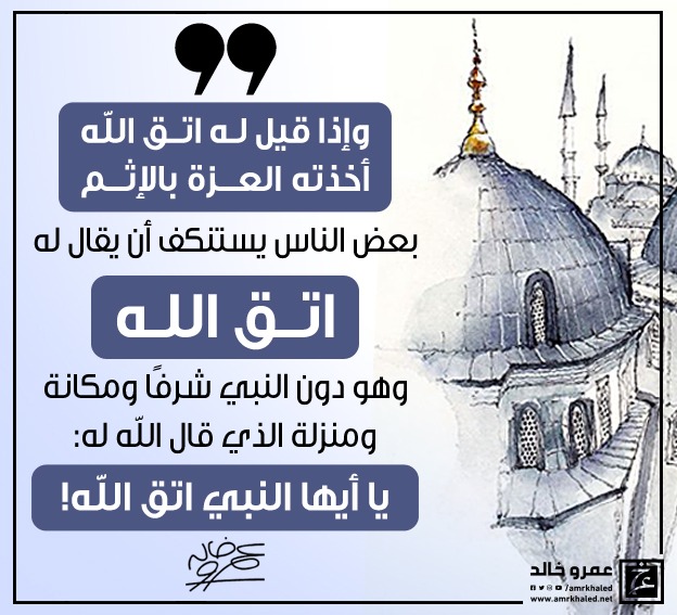 "{وإذا قيل له اتق الله أخذته العزة بالإثم}، بعض الناس يستنكف أن يقول له أحد: اتق الله، وهو دون النبي شرفًا ومكانة ومنزلة الذي قال الله له: {يا أيها النبي اتق الله}!".