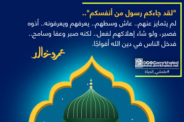 "{لقد جاءكم رسول من أنفسكم}.. لم يتمايز عنهم.. عاش وسطهم.. يعرفهم ويعرفونه.. أذوه فصبر، ولو شاء إهلاكهم لفعل.. لكنه صبر وعفا وسامح.. فدخل الناس في دين الله أفواجًا".