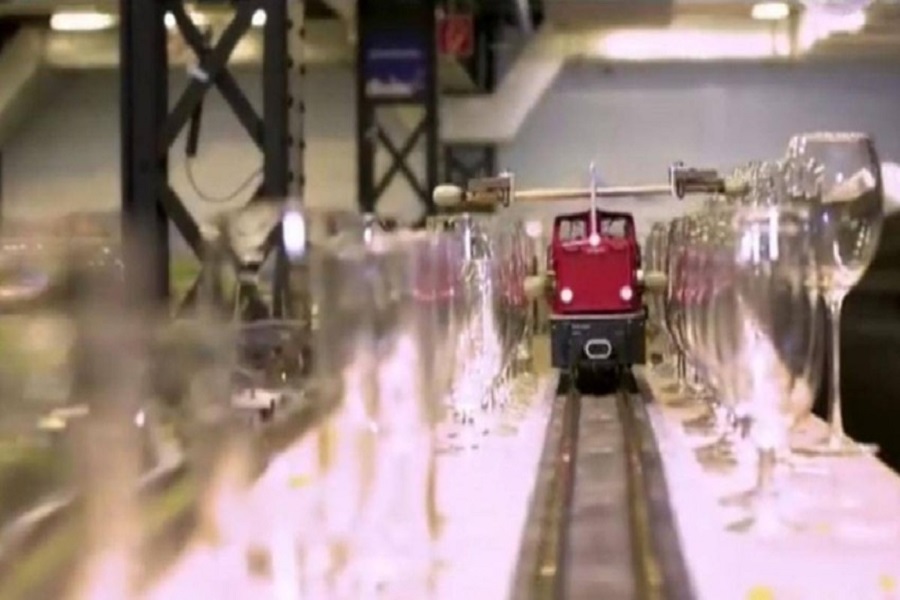 قال فريدريك براون، مؤسس متحف (العجائب المصغرة) في مدينة هامبورج، إن الفكرة نمت إلى أذهانهم خلال إغلاق المتحف الذي فرضه كوفيد = 19، من خلال إنشاء قطار نموذجي به 2840 كأس نبيذ مليئة بكميات متفاوتة من الماء.