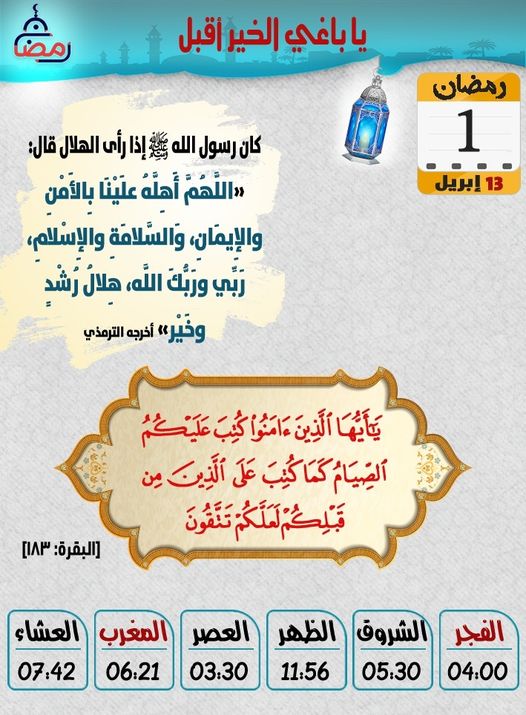 مواقيت الصلاة وموعد أذان المغرب ليوم الثلاثاء 1 رمضان .. ياباغي الخير اقبل