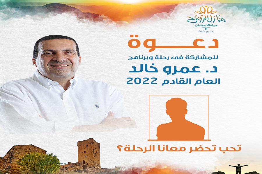 للعام الثالث على التوالي، فتح الدكتور عمرو خالد، الداعية الإسلامي، الباب أمام جمهوره الراغب في المشاركة وحضور تصوير حلقات برنامجه السنوي في رمضان للعام المقبل (2022).