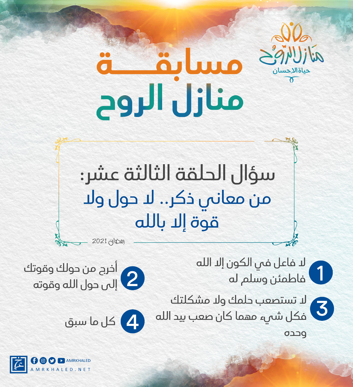 amrkhaled.netسؤال الحلقة الثالثة عشر: من معاني ذكر.. لا حول ولا قوة إلا بالله