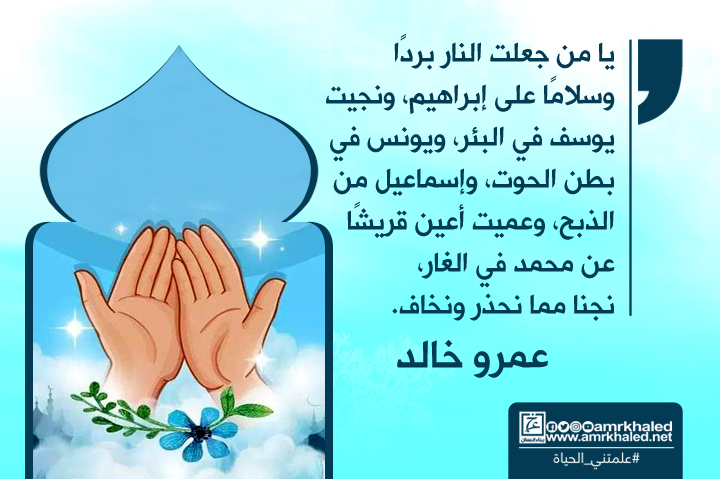 amrkhaled "يا من جعلت النار بردًا وسلامًا على إبراهيم، ونجيت يوسف في البئر، ويونس في بطن الحوت، وإسماعيل من الذبح، وعميت أعين قريش عن محمد في الغار، نجنا مما
