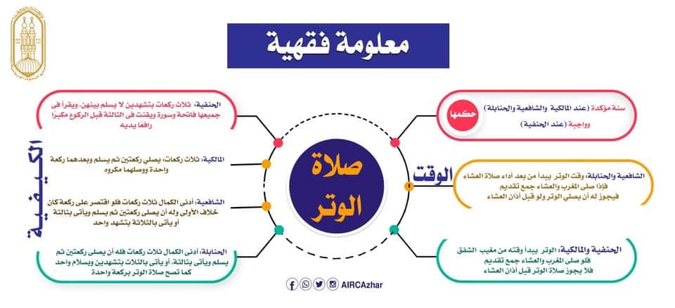 *عدد الراكعات .. الحنفية ثلاث ركعات بتشهدين لا يسلم بينهن ويقرأ في جميعها فاتحة الكتاب ويقنت في الثالثة قبل الركوع مكبرا رافعا يديه.