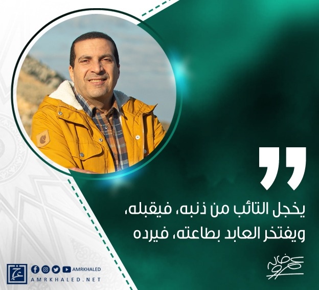 amrkhaled "يخجل التائب من ذنبه، فيقبله، ويفتخر العابد بطاعته، فيرده".