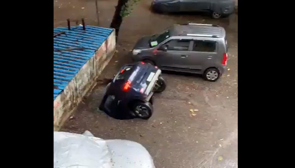 وشارك موقع "سبوتنيك" عن وسائل إعلام هندية مشهدا غريبا لابتلاع حفرة صغيرة لسيارة بالكامل بعد انجراف التربة أسفل الطبقة الإسفلتية للطريق.