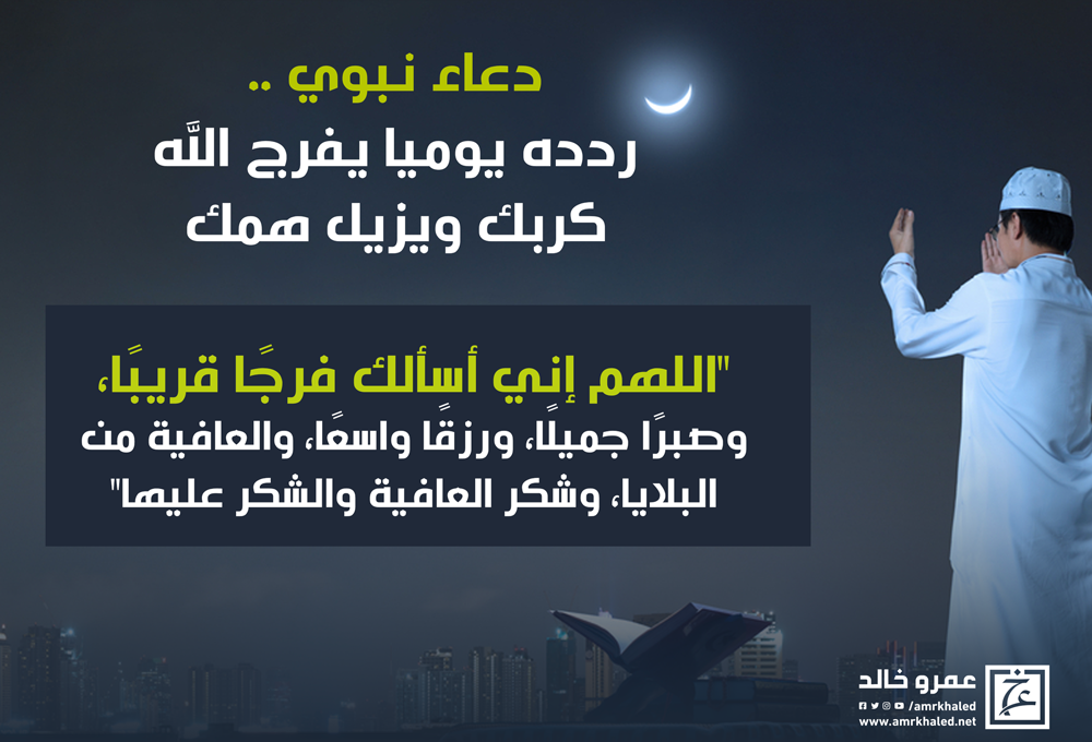 amrkhaled دعاء نبوي ..ردده يوميا يفرج الله كربك ويزيل همك "اللهم إني أسألك فرجًا قريبًا، وصبرًا جميلًا، ورزقًا واسعًا، والعافية من البلايا، وشكر العافية والشكر