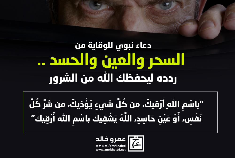 amrkhaled "باسْمِ اللهِ أَرْقِيكَ، مِن كُلِّ شيءٍ يُؤْذِيكَ، مِن شَرِّ كُلِّ نَفْسٍ، أَوْ عَيْنِ حَاسِدٍ، اللَّهُ يَشْفِيكَ باسْمِ اللهِ أَرْقِيكَ"