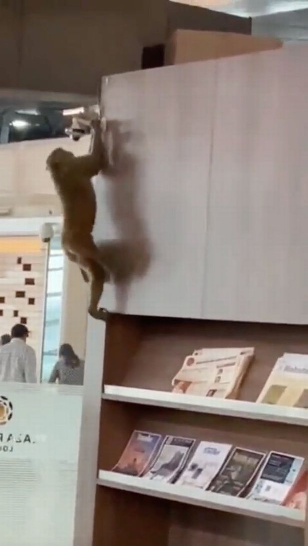 تجول قرد في صالة كبار الزوار بأحد مطارات الهند، وتناول عصير الفاكهة قبل طرده.