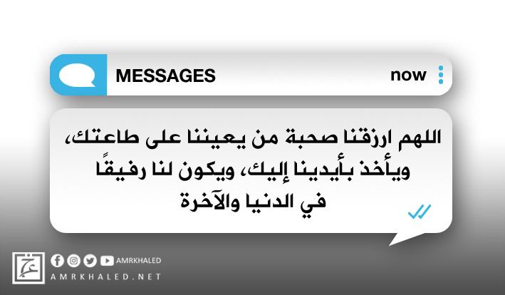 amrkhaled "اللهم ارزقنا صحبة من يعيننا على طاعتك، ويأخذ بأيدينا إليك، ويكون لنا رفيقًا في الدنيا والآخرة".