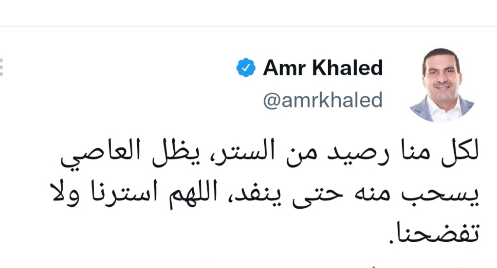 amrkhaled "لكل منا رصيد من الستر، يظل العاصي يسحب منه حتى ينفذ، اللهم استرنا ولا تفضحنا".