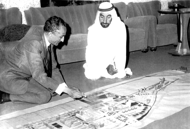 في العام 1968، طلب الشيخ زايد بن سلطان آل نهيان، حاكم أبوظبي آنذاك من الأمم المتحدة إرسال خبير لتخطيط المدن إلى أبوظبي للمساعدة في إعداد المخطط العام لمدينة أبوظبي، فتم ترشيحه لهذه المهمة.