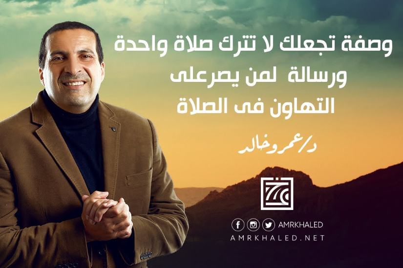 يكشف الداعية الإسلامي الدكتور عمرو خالد، من خلال مقطع الفيديو المنشور على صفحته الرسمية على موقع "يوتيوب"، لمشاهديه ومتابعيه عن وصفة تجعلك لا تترك صلاة واحدة، مطالبا بنشر هذه الوصفة وإرسالها لمن يصر على التهاون فى الصلاة.