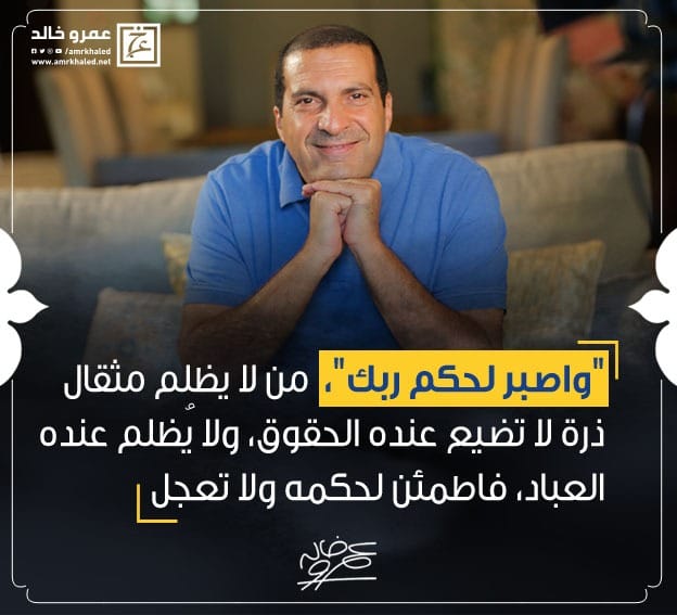 amrkhaled "{واصبر لحكم ربك}، من لا يظلم مثقال ذرة لا تضيع عنده الحقوق، ولا يظلم عنده العباد، فاطمئن لحكمه ولا تعجل"