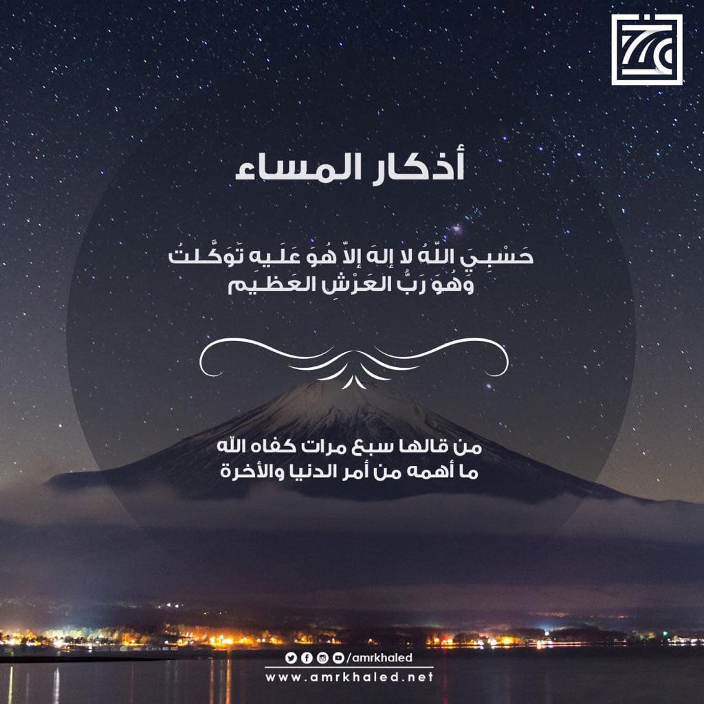 أذكار الصباح والمساء أذكار المساء حسبي الله لا إله إلا هو عليه توكلت وهو رب العرش العظيم كفاه الله ما أهمه من أمر الدنيا والآخرة أدعية واذكار