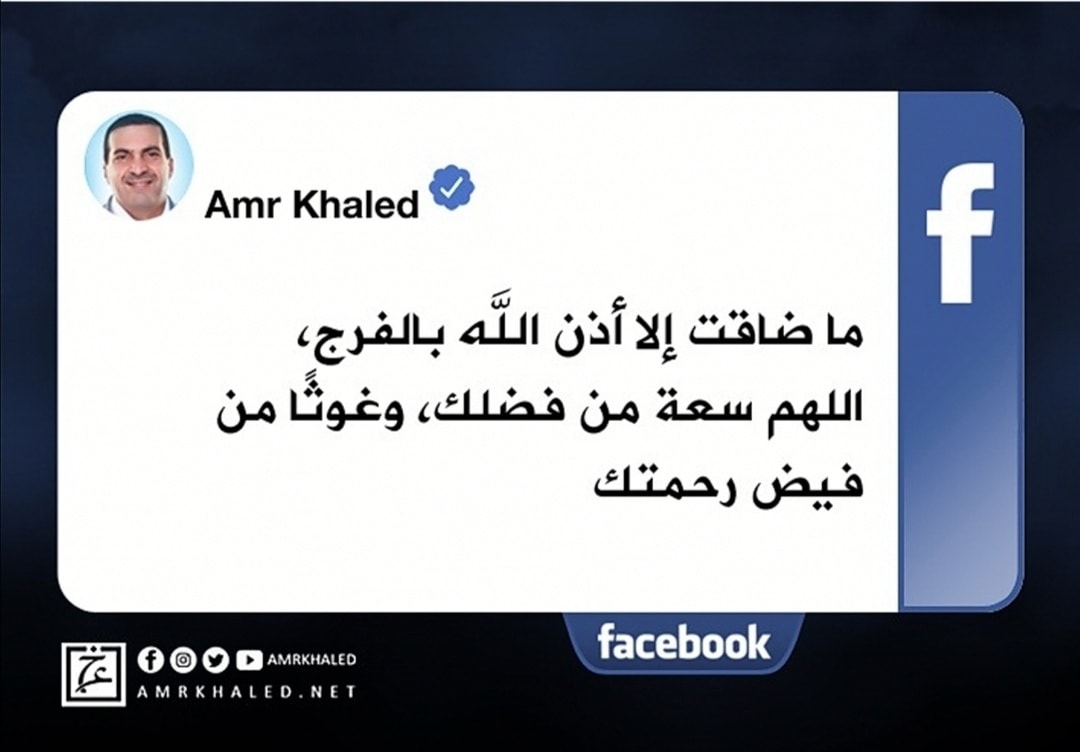 amrkhaled "ما ضاقت إلا أذن الله بالفرج، اللهم سعة من فضلك، وغوثًا من فيض رحمتك"