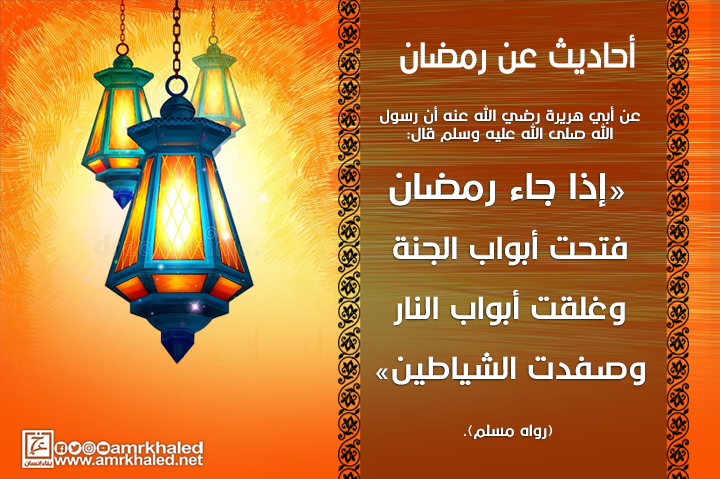 عن أبي هريرة رضي الله عنه أن رسول الله صلى الله عليه وسلم قال: «إذا جاء رمضان فتحت أبواب الجنة وغلقت أبواب النار وصفدت الشياطين» (رواه مسلم).