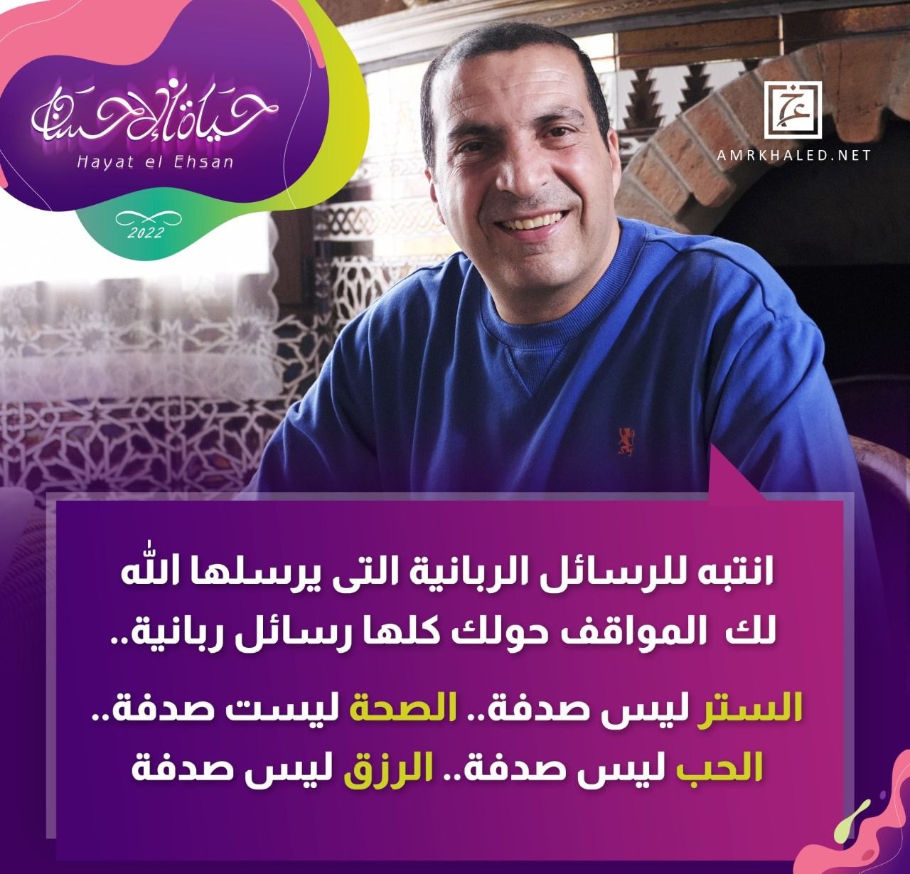 amrkhaled "انتبه للرسائل الربانية التي يرسلها الله لك، المواقف حولك كلها رسائل ربانية.. الستر ليس صدفة.. الصحة ليست صدفة.. الحب ليس صدفة.. الرزق ليس صدفة"