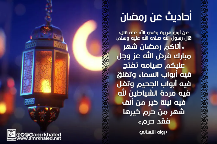عن أبي هريرة رضي الله عنه قال: قال رسول الله صلى الله عليه وسلم: «أتاكم رمضان شهر مبارك فرض الله عز وجل عليكم صيامه تفتح فيه أبواب السماء وتغلق فيه أبواب الجحيم وتغل فيه مردة الشياطين لله فيه ليلة خير من ألف شهر من حرم خيرها فقد حرم» (رواه النسائي وصححه الألباني).